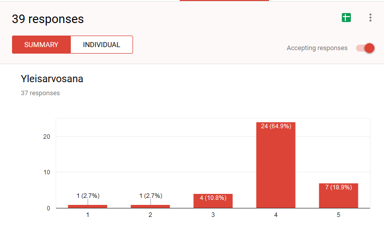 Palautetta tuli mukavasti 39 kpl.