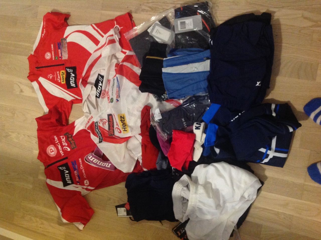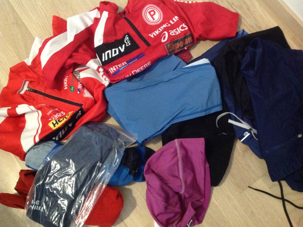 - käyttämättömiä miesten suunnistushousuja ja -trikoita (miesten M-L)