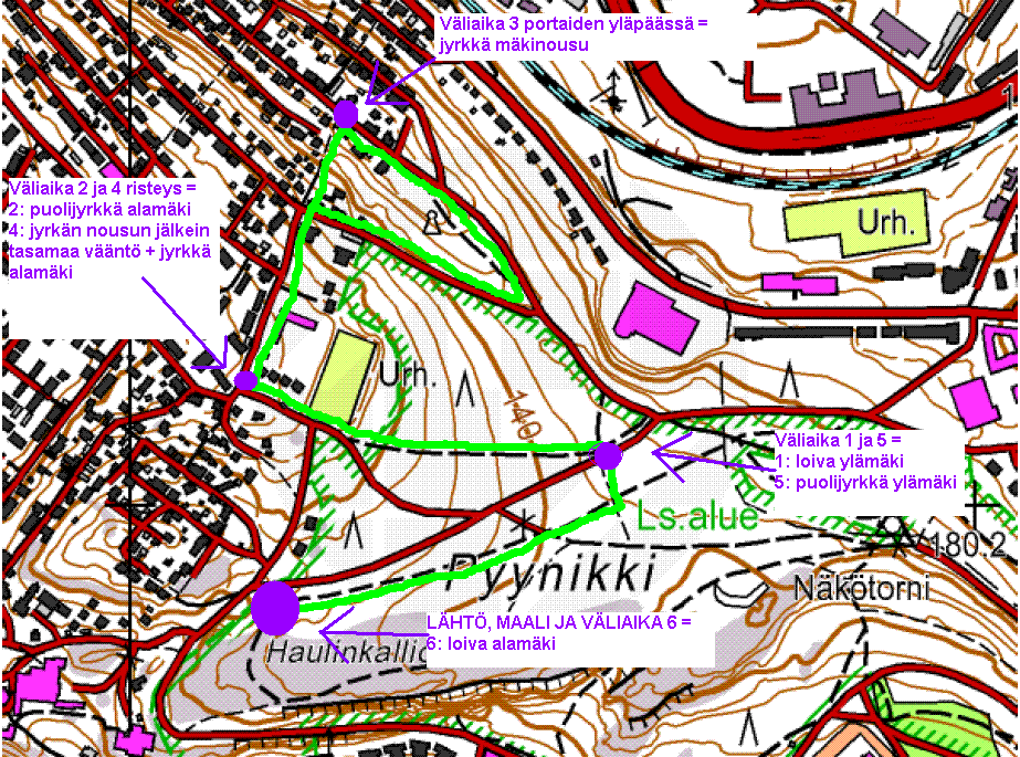 - Pulssimittari mukaan, varaudu ottamaan väliaikoja (ks oheinen reittikartta)