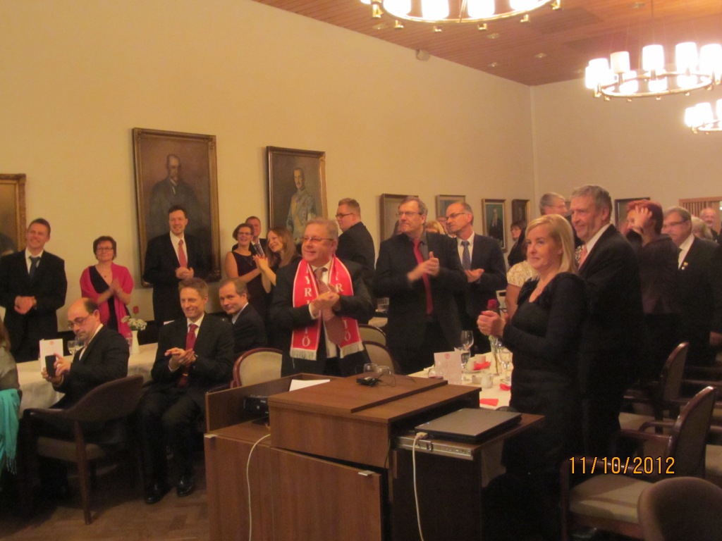 Illalla oli sitten vuorossa hieno JuhlaGaala Suomalaisella Klubilla. Juhlan avasi suunnistusjaoston puheenjohtaja Juha Laakkonen. Sitten oli Pyrinnön puheenjohtaja Ilkka Vilonen. Suunnistusliiton tervehdyksen juhlivalle seuralle toi SSL:n puheenjohtaja Kirre Palmi.