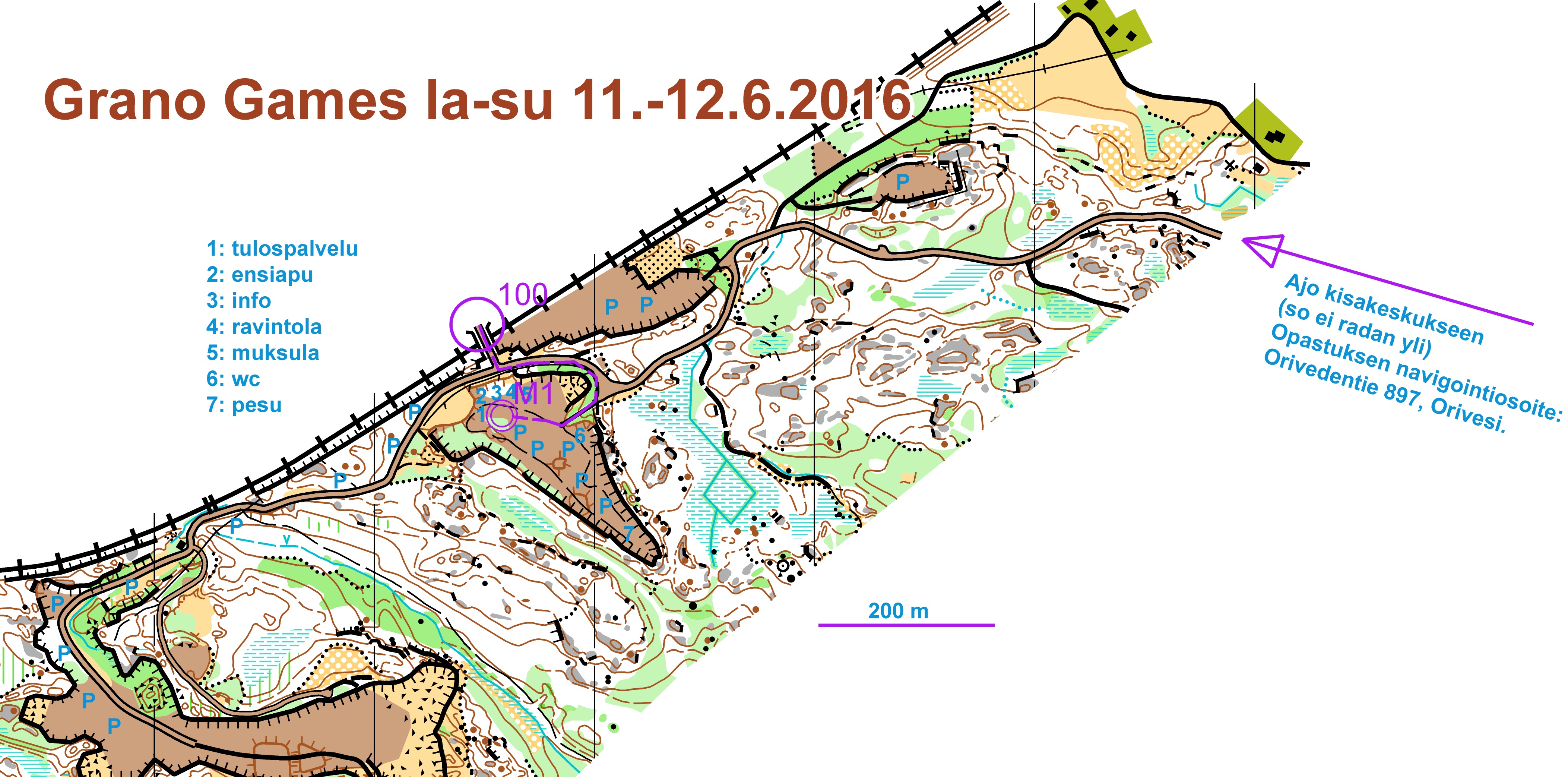 La 11.6. klo 12 keskimatka: Siitama-Naappila, kisakeskuksen os: Vanhanradantie 339, Orivesi. Opastus Kantatieltä 58 (Kangasala-Orivesi) Orivedentien ja Kivimäentien risteys, opastuksen navigointiosoite: Orivedentie 897, Orivesi. Opastuksesta 5 min ajo. Kilpailukeskus Naappilan vanha kivilouhimo. Pysäköinnistä matkaa 100-1000 m. Huom. Kisan aikana kisakeskukseen ajo on kielletty Siitaman suunnasta Vanhanradantietä, koska viimeiseltä rastilta maaliin juostaan siltaa pitkin (ajoissa = 1.5 h ennen kisan alkua tulevat toimitsijat voivat ajaa siltaa pitkin).