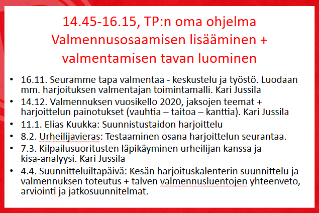 15:00-16:15 TP valmennuksellinen ohjelma: Valmennuksen vuosikello 2020